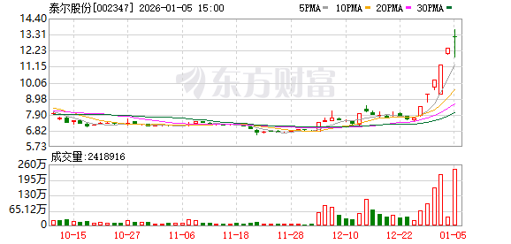 公司交易与股价表现 - 泰尔股份成交额达23.02亿元,创下自2024年12月12日以来的新高 [2] - 公司最新股价上涨6.22% [2] - 公司换手率达到35.69% [2]
