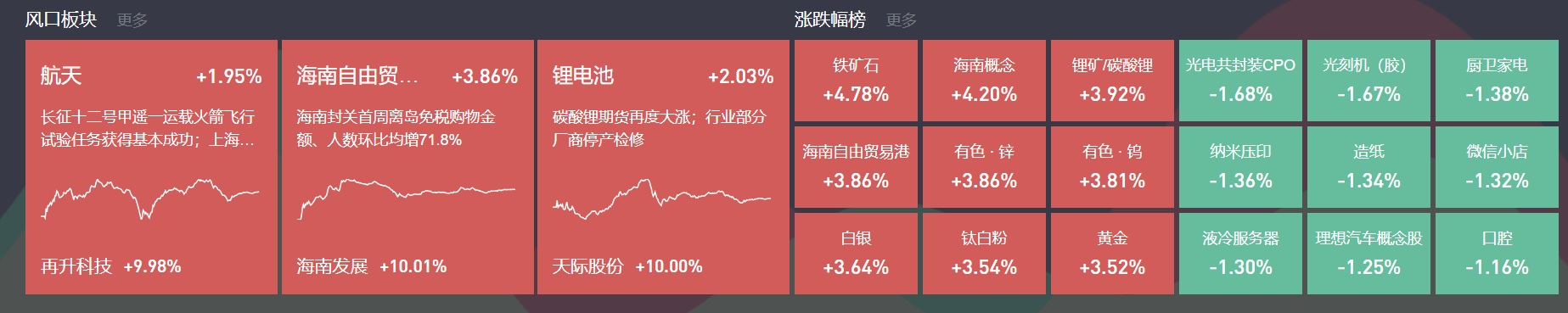 12月26日主题复盘 | 航天板块继续强势,锂电池大反弹,海南自贸再度表现