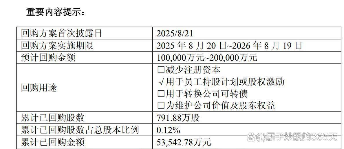 你说奇怪不奇怪,2025年A股市场上,白酒和医药这对"难兄难弟"表现都挺让人挠头。 可就在大伙儿觉得这俩板块都蔫儿了的时候,医药公司的老板们却偷偷干了一件白酒老板们不太乐意干的事——砸重金回购自己家的股票,而且买回来就直 接"销毁",再也不放出来了。 光是龙头就有38家参与了这场"烧钱游戏",其中6家砸的钱超过5个亿,最狠的一家一下就是10个亿。 这可不是闹着玩的,这是真金白银往里扔,连眼睛都 不带眨的。 | 回购方案首次披露日 | 2025/8/21 | | --- | --- | | 回购方案实施期限 | 2025年8月20日~2026年8月19日 | | 预计回购全额 | 100,000万元~200,000万元 | | 回购用途 | □减少注册资本 | | | √用于员工持股计划或股权激励 □用于转换公司可转债 | | | □为维护公司价值及股东权益 | | 累计已回购股数 | 791.88万股 | | 累计已回购股数占总股本比例 | 0.12% STORE AND S | | 累计已回购金额 | 53,542.78万元 | 看看这阵仗,2025年整整一年,A股医药圈里就没消停过。 药明康德,行业里数一 ...