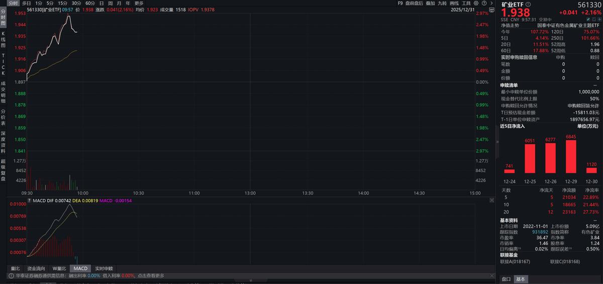 “家里有矿,年内涨超有色”,矿业ETF(561330)涨超2%,年内涨超108%