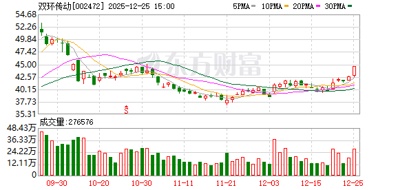 公司股价与交易表现 - 12月19日,双环传动股价上涨5.27%,报收41.92元/股,成交额4.88亿元,换手率1.58%,总市值356.14亿元 [1] 公司基本信息与业务构成 - 公司全称为浙江双环传动机械股份有限公司,成立于2005年8月25日,于2010年9月10日上市,总部位于浙江省杭州市余杭区 [1] - 公司主营业务为机械传动齿轮的研发、设计与制造 [1] - 主营业务收入构成:乘用车齿轮占比63.11%,智能执行机构占比10.06%,工程机械齿轮占比8.39%,减速器及其他占比8.25%,商用车齿轮占比7.64%,电动工具齿轮占比1.68%,摩托车齿轮占比0.87% [1] 基金持仓动态 - 安信基金旗下安信工业4.0混合A(004521)在第三季度增持双环传动2.35万股,截至三季度末持有3.3万股,占基金净值比例为3.04%,位列其第十大重仓股 [2] - 根据测算,12月19日该基金因持有双环传动浮盈约6.93万元 [2] 相关基金概况 - 安信工业4.0混合A(004521)成立于2017年7月20日,最新规模为519.06万元 [2] - 该基金今年以来收益率为10.8%,同类排名5468/8098;近一年收益率为10.53%,同类排名5371/8067;成立以来收益率为28.43% [2] - 该基金的基金经理为谭珏娜和倪瑞超 [3] - 谭珏娜累计任职时间8年16天,现任基金资产总规模5411.89万元,任职期间最佳基金回报172.04%,最差基金回报-21.05% [3] - 倪瑞超累计任职时间187天,现任基金资产总规模5411.89万元,任职期间最佳基金回报17.01%,最差基金回报16.78% [3]