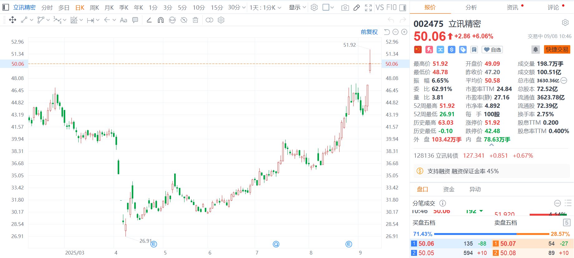 涨超2.6%,消费电子ETF(561600)近10个交易日净流入2.29亿元