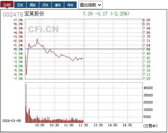 1月7日晚间,宝莫股份(002476)公告,公司于2026年1月7日收到实际控制人罗小林、韩明夫妇通知, 其正在筹划公司控制权变更相关事宜,具体方案以各方签署的相关协议为准。上述事项的具体方案尚在 筹划中,尚未签署正式协议,具有不确定性。公司将根据上述事项的进展情况,严格按照有关法律法规 的规定和要求履行信息披露义务。 值得注意的是,记者注意到,罗小林、韩明夫妇取得宝莫股份控制权才仅仅两年时间。有网友发帖 称,"这次控股股东这么快承认要跑,细思极恐",这意味着,公司实控人夫妇入主后这么快就筹划控制 权变更的举措,可能在部分股民心中引发一些疑虑。 二级市场上,从分时图看,宝莫股份8日开盘后资金有分歧,跌超5%后一度有拉升,但此后整体震荡走 低,截至午间收盘跌2.25%。 宝莫股份近期的动向,是披露了第一大股东的质押情况。2025年12月24日,宝莫股份公告,第一大股东 四川兴天府宏凌解除质押股份7676万股,占其所持股份的79.38%及公司总股本的12.54%;同时再质押 7252万股,占其所持股份的75.00%及公司总股本的11.85%。截至公告披露日,兴天府宏凌累计质押 7252万股,占其所持股份的75%和 ...