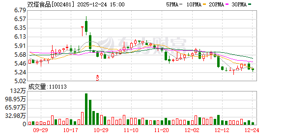 每经头条(nbdtoutiao)——海南封关首日直击:为中国探路,全球最大自贸港如何重塑开放边界? (记者 王晓波) 2025年1至6月份,双塔食品的营业收入构成为:农副食品加工业占比100.0%。 截至发稿,双塔食品市值为67亿元。 每经AI快讯,双塔食品(SZ 002481,收盘价:5.45元)12月19日晚间发布公告称,公司近日接到控股 股东招远君兴农业发展中心(以下简称"君兴农业")函告,获悉其持有公司的部分股份办理了解除质 押,本次解除质押合计720万股。截至本公告日,君兴农业累计质押股数约为2.27亿股,占其所持股份 比例为56.4%。 ...