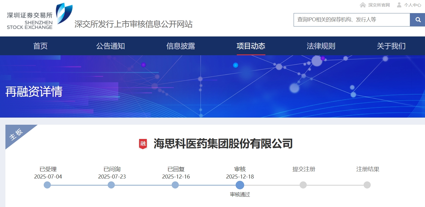 公司融资进展 - 海思科向特定对象发行股票的申请已于2025年12月18日获得深圳证券交易所上市审核中心审核通过 [1] - 公司已会同中介机构更新修订了募集说明书等申请文件,并于同日披露了相关文件 [1] - 本次发行尚需获得中国证监会同意注册后方可实施,最终能否获批及具体时间仍存在不确定性 [1]