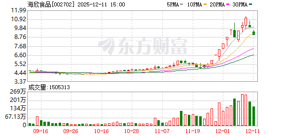 海欣食品龙虎榜:营业部净买入429.63万元