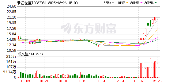 浙江世宝触及涨停,录得9天6板,成交额30.56亿元