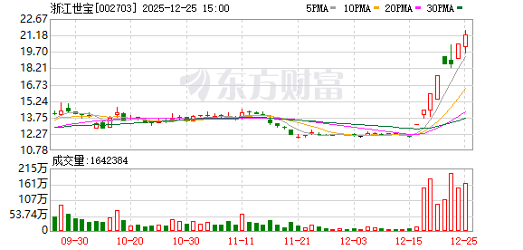 以全主动悬架、线控转向、线控制动等为代表的智能底盘,成为衡量整车智能化水平的核心标尺之一。 12月11日,浙江世宝在回复投资者提问时表示,公司的线控转向开发正在有序推进中,可以在2026年下 半年具备量产条件。相关政策出台后,浙江世宝进一步表示,公司的智能转向、线控转向、电调管柱等 产品均适用于L3级及以上自动驾驶。L3级自动驾驶准入目录的公布,有利于推进高级别自动驾驶的上 路及普及,将会促进公司智能化转向产品的推广及量产。 (文章来源:中国证券报) 浙江世宝股价迅速反应,12月16日起,浙江世宝股价连拉四个涨停。截至12月25日收盘,浙江世宝股价 为21.22元/股,在近8个交易日中5次涨停收盘。公开资料显示,浙江世宝主要从事汽车转向器及其他转 向系统关键零部件的研发、制造及销售,2006年5月,浙江世宝在港交所上市,2012年11月,浙江世宝 在深交所上市。2024年年报显示,浙江世宝实现营业收入26.93亿元,同比增长48.04%;归属于上市公 司股东的净利润为1.49亿元,同比增长93.15%。其营收主要来自转向系统及部件,2024年该部分营收占 总营收的94.18%。 受限于主营业务较为单一,浙江世 ...