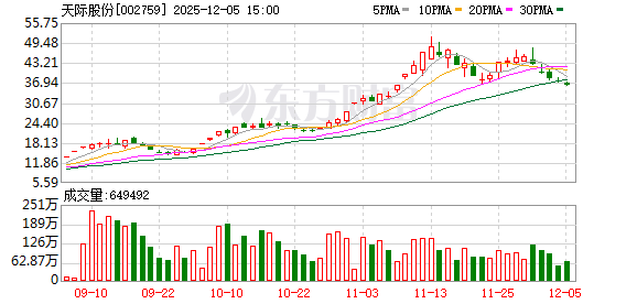 天际股份控股股东5天减持1425.6万股 套现约5.8亿元
