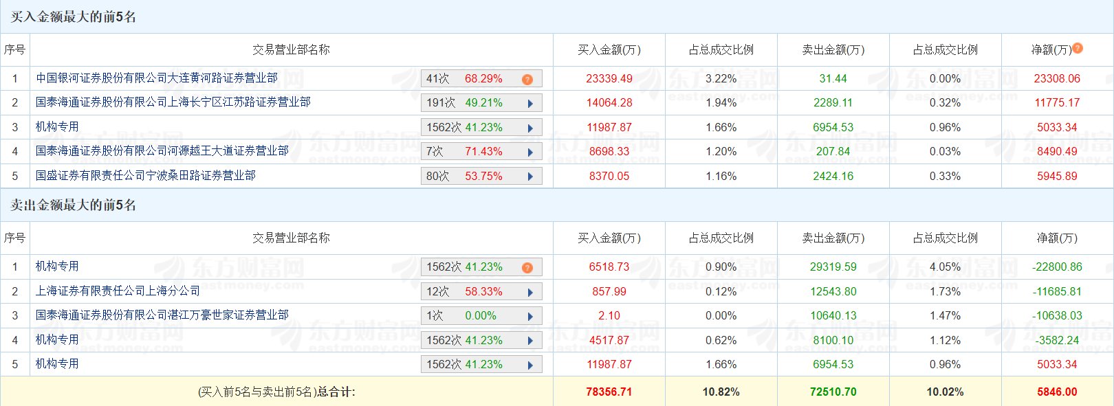 6.67亿资金抢筹金风科技,机构狂买海南发展(名单)丨龙虎榜