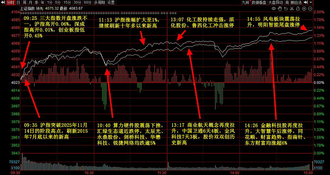 市场行情概览 - 新年第二个交易日,主要指数放量走强,沪指、深成指、创业板指分别收涨1.5%、1.4%、0.75% [4] - 市场呈现普涨格局,超4100只个股上涨,1200余只个股下跌 [4] - 两市成交量进一步放大,合计成交超2.8万亿元 [4] 题材板块表现 - **无人驾驶/自动驾驶板块**:全天单边上扬,最终收涨2.38% [7]。索菱股份实现3连板,浙江世宝、兴民智通、大众交通、雷尔伟(20CM)、威帝股份、万集科技(20CM)等多股涨停,华测导航、豪恩汽电、国科微、阿尔特等涨超10% [3][7] - **金融板块**:全天走强,券商、保险、金融科技子板块分别收涨3.73%、3.82%、2.02% [11]。华林证券、华安证券、证通电子、天利科技、大智慧、御银股份等先后涨停,同花顺涨超12%,指南针、财富趋势、新华保险、长江证券等集体大涨 [3][11] - **有色板块**:大幅上涨,金浦钛业、钒钛股份、利源股份、常铝股份、安宁股份、新金路、锡业股份、宝武镁业等先后涨停 [3] - **商业航天板块**:午后再度反弹,雷科防务实现5连板,北斗星通、中国卫通实现3连板,普利特、银河电子、航天长峰、谱尼测试(20CM)、海格通信等实现2连板 [3] - **其他板块**:固态电池、化工、半导体、LCD等均有局部强势表现 [3] 自动驾驶行业动态 - 板块上涨的催化因素之一是英伟达在CES展会上发布开源AI模型及工具套件Alpamayo系列,旨在加速新一代安全自动驾驶技术研发 [7] - 英伟达发布的模型具备强大的多模态处理能力和极高的“可解释性”,被视为助推L4级自动驾驶落地的关键一步 [7][8] - 市场炒作情绪可能部分延续了特斯拉FSD(完全自动驾驶)的概念 [9] 相关公司事件 - **禾赛科技**:公司被英伟达选定为“NVIDIA DRIVE AGX Hyperion 10平台”的激光雷达合作伙伴,受此消息影响,其股价盘中一度涨超7%,最终收涨5.9% [12] - 由于禾赛科技未进入港股通,A股资金转而关注其产业链公司,如神通科技涨停,永新光学走强 [12] - **科蓝软件**:股价表现受到多重题材影响,包括商业航天、脑机接口以及其本身作为金融科技标的,但全天高开低走后反弹,最终收涨5.38% [14]