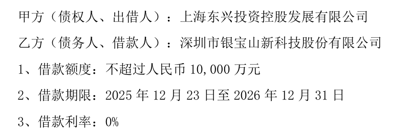 借款信息 - 控股股东上海东兴向公司提供不超1亿元无息借款,已收到5000万元[2] - 借款期限为2025年12月23日至2026年12月31日,额度可循环使用,未归还本金余额不得超1亿[5] 股东数据 - 上海东兴2024年末总资产3789952.10万元,2025年9月末为3742753.02万元[4] - 上海东兴2024年末净资产138995.89万元,2025年9月末为55689.56万元[4] - 上海东兴2024年度营收41722.54万元,2025年前三季度为13001.36万元[4] - 上海东兴2024年度净利润 -76340.50万元,2025年前三季度为 -81887.33万元[4] - 上海东兴持有公司27.49%的股权[4]