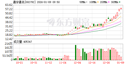 人民财讯1月8日电,二连板通宇通讯(002792)1月8日披露股票交易异动公告称,公司股票自2025年11 月27日以来收盘价格累计上涨幅度为191.65%,同期申万通信设备行业涨幅16.33%,深证成指涨幅 8.15%,公司股票期间涨幅显著高于同期行业及深证成指涨幅,但公司基本面未发生重大变化,存在市 场情绪过热及非理性炒作的情形,存在股价短期快速回落风险。截至2026年1月8日收盘,公司股票收盘 价为57.31元/股,处于历史高位,股价已脱离基本面;公司股票成交额37.16亿元,成交量较大。投资者 交易存在较大风险,敬请广大投资者注意二级市场公司股票交易风险,理性决策,审慎投资。 ...