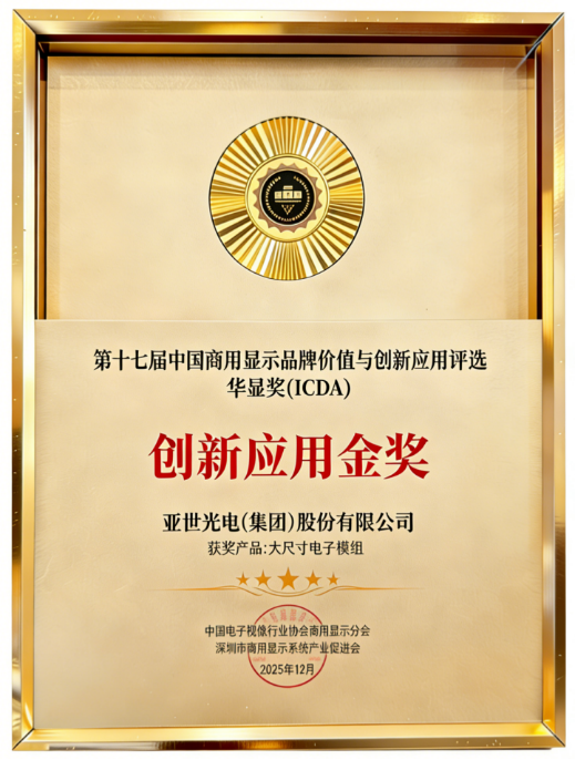 近日,第十七届中国商用显示品牌价值与创新应用评选(ICDA)华显奖颁奖盛典落下帷幕,亚世光电 (002952)凭借自主研发的大尺寸电子纸模组,成功斩获"创新应用金奖",这一奖项是行业对其在商用 显示领域技术创新与应用落地能力的权威认可。 亚世光电相关负责人表示,此次获奖是行业对公司电子纸技术研发与应用落地能力的高度认可。未来将 持续深耕电子纸显示技术研发,拓展大尺寸、全彩化、柔性化产品形态,为智慧零售、智慧城市、工业 物联网等领域注入更多绿色显示动能,助力商用显示产业高质量发展。(燕云) 本次华显奖由中国电子信息行业联合会商用显示分会、深圳市商用显示系统产业促进会联合主办,是中 国商用显示领域极具影响力的评选活动。亚世光电获奖的大尺寸电子纸模组,聚焦绿色显示与智慧场景 需求,兼具低功耗、类纸护眼、户外强光可视等核心优势,可广泛适配智慧零售广告屏、智慧交通导视 牌、智慧办公展示墙等商用场景。其大尺寸特性突破了传统电子纸的应用局限,为规模化商用显示场景 提供了低能耗、高可靠性的创新解决方案。 ...