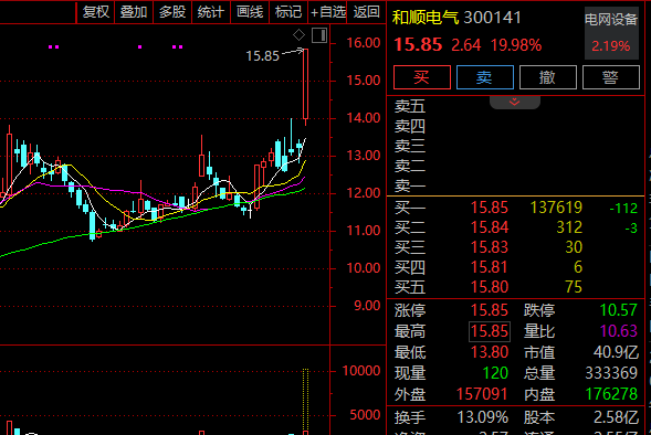 电网设备板块盘初走强,和顺电气、中国西电涨停