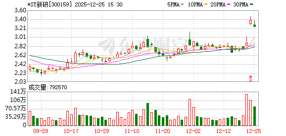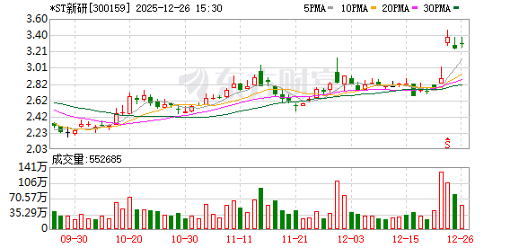 *ST新研大宗交易成交45.00万股 成交额148.95万元