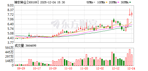 (原标题:神农种业龙虎榜数据(12月25日)) 神农种业今日下跌4.94%,全天换手率31.21%,成交额21.17亿元,振幅10.32%。龙虎榜数据显示,机构 净卖出256.82万元。 深交所公开信息显示,当日该股因日换手率达31.21%上榜,机构专用席位净卖出256.82万元。 具体来看,今日上榜的营业部中,共有5家机构专用席位现身,即买一、买二、买三、买四、买五、卖 一、卖二、卖三、卖四、卖五,合计买入金额1.90亿元,卖出金额1.93亿元,合计净卖出256.82万元。 近半年该股累计上榜龙虎榜9次,上榜次日股价平均跌1.57%,上榜后5日平均跌7.02%。 神农种业12月25日交易公开信息 | 买/卖 | 会员营业部名称 | 买入金额(万元) | 卖出金额(万元) | | --- | --- | --- | --- | | 买一 | 机构专用 | 5279.89 | 4240.16 | | 买二 | 机构专用 | 3947.47 | 4753.28 | | 买三 | 机构专用 | 3916.01 | 3310.21 | | 买四 | 机构专用 | 3175.00 | 4125.93 | | 买五 | ...