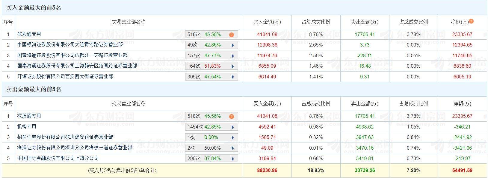 龙虎榜丨翰宇药业20%涨停,深股通净买入2.33亿元
