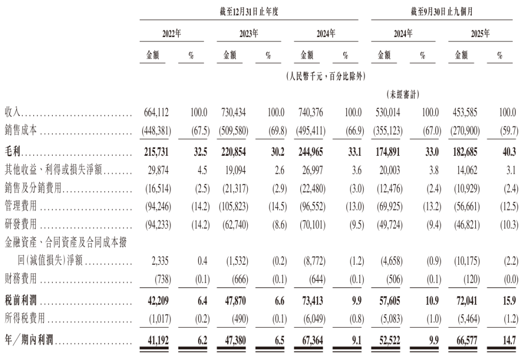 来源:新浪港股-好仓工作室 营收下滑14.4%毛利率逆升7.3% 业务结构失衡隐现 四方精创2025年前三季度营收同比下滑14.4%至4.54亿元,与2023年9.9%、2024年1.4%的增速形成鲜明 对比,增长动能显著减弱。但同期毛利率却从2024年的33.1%跃升至40.3%,提升7.3个百分点,呈现"营 收降、毛利升"的反常态势。 招股书称毛利率提升系"战略性收缩低毛利业务",但区域收入结构已出现严重失衡。2025年前三季度, 中国内地收入骤降59.6%,香港市场收入占比飙升至81.5%,较2024年的65.2%提升16.3个百分点。值得 警惕的是,香港收入中12.8%依赖金融基建及创新服务,该业务主要服务香港金管局等监管项目,存在 政策周期性波动风险。若香港数字金融监管政策调整,可能直接影响公司近四成收入稳定性。 前五大客户贡献89.4%收入 最大客户依赖度54%超行业两倍 客户集中度风险持续恶化。2025年前三季度,公司来自前五大客户的收入占比高达89.4%,其中最大客 户贡献54.0%收入,较2024年的42.4%激增11.6个百分点,创历史新高。对比行业龙头公司平均25%的客 户集中度,四方精 ...