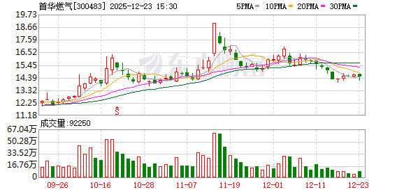 首华燃气(300483)披露控股子公司收到财政补助事项,12月22日股价上涨1.04%