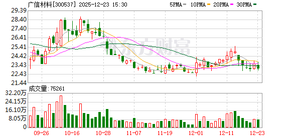 每经头条(nbdtoutiao)——地产"优等生"受困20亿元到期债务,首次债务展期仍在博弈,明年还有超 百亿元公开债到期 (记者 曾健辉) 截至发稿,广信材料市值为48亿元。 每经AI快讯,广信材料(SZ 300537,收盘价:22.99元)12月23日晚间发布公告称,公司第五届第十九 次董事会会议于2025年12月23日在公司二楼会议室以现场结合通讯方式召开。会议审议了《关于调整募 集资金投资项目内部投资结构及部分延期的议案》等文件。 2024年1至12月份,广信材料的营业收入构成为:电子化学品行业占比100.0%。 ...