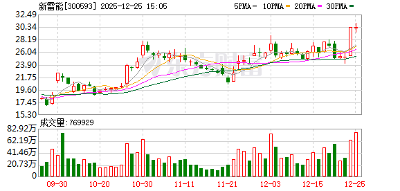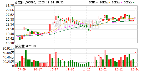 股价表现与交易数据 - 新雷能股票于12月24日涨停,收盘价涨幅达20.00%,全天振幅为19.53% [2] - 当日成交额为18.30亿元,换手率为14.04% [2] - 当日主力资金净流入3.10亿元,其中特大单净流入3.69亿元,大单资金净流出5866.25万元,近5日主力资金净流入2.44亿元 [2] 龙虎榜机构与资金动向 - 根据龙虎榜数据,上榜的前五大买卖营业部合计成交4.23亿元,合计净买入1050.30万元,其中买入成交额为2.17亿元,卖出成交额为2.06亿元 [2] - 机构专用席位合计净买入8358.73万元,具体为4家机构合计买入1.72亿元,卖出8821.03万元 [2] - 深股通专用席位为第三大买入及第一大卖出营业部,买入4457.45万元,卖出5894.54万元,合计净卖出1437.09万元 [2][3] - 营业部席位(非机构及深股通)合计净卖出5871.34万元 [2] 融资融券情况 - 截至12月23日,公司最新两融余额为5.35亿元,其中融资余额为5.33亿元,融券余额为211.68万元 [3] - 近5日融资余额合计增加6509.19万元,增幅为13.92% [3] - 近5日融券余额合计减少40.39万元,降幅为16.02% [3]