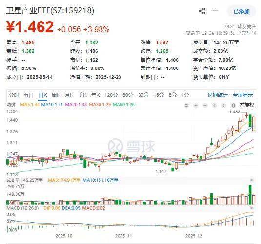卫星产业市场表现与技术分析 - 卫星产业ETF(159218)在长征十二号甲首飞次日大涨4.77%,多只成分股如中国卫星、新雷能涨停 [1] - 中国卫星股价形成放量长阳反包前日阴线的“阳包阴”看涨结构,强势突破 [1] - ETF在12月以来形成清晰上升通道,回踩10日、20日均线及通道下轨均获支撑,呈现强趋势特征 [3] - 在市场调整日,ETF成交额创历史新高达到近4.3亿元,并获得超过1.2亿元净申购,呈现“放量抗跌”的吸筹特征 [4] - 板块上涨日成交量继续放大,形成“价升量增”的健康态势,龙头股中国卫星涨停板封单坚决,抛压有限 [4] 对火箭回收事件的行业解读 - 长征十二号甲是国内第二款首飞即尝试回收的液氧甲烷火箭,标志着低成本入轨技术路径的实质性推进 [5] - 航天工程具有长周期、高复杂度特点,试飞数据积累比短期成败更重要,为后续迭代奠定基础 [5] - 该火箭采用“国家队主研+民企核心部件”的创新协作模式,主动力采用民企的“龙云”发动机 [5] - 此模式结合了国家队技术底蕴与民企的灵活性、成本控制能力,有望对全产业链产生远超以往的拉动作用 [5] 商业航天产业趋势与资本动态 - 今年以来商业航天领域投融资已超过95亿元 [7] - 蓝箭航天已完成IPO辅导,估值达200亿元,科创板“商业航天第一股”临近 [7] - 北京、四川、山东等地地方国资加速布局,相继设立产业基金,北京政策提供单发最高500万元的成功入轨奖励 [7] - 政策与资本正在形成合力,驱动商业航天进入清晰可见的成长期 [7] - 卫星产业ETF(159218)覆盖卫星制造、发射、地面设备、导航通信、芯片、终端与大数据服务全产业链,其中航天装备权重超过25% [7]