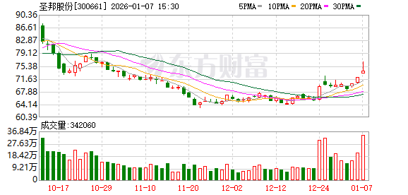 圣邦股份今年以来股价涨4.43%,近5个交易日涨3.46%,近20日涨8.44%,近60日跌11.31%。 1月6日,圣邦股份盘中上涨2.01%,截至09:53,报71.68元/股,成交3.02亿元,换手率0.72%,总市值 443.02亿元。 资金流向方面,主力资金净流入1971.40万元,特大单买入2078.49万元,占比6.89%,卖出1584.59万 元,占比5.25%;大单买入7585.01万元,占比25.15%,卖出6107.51万元,占比20.25%。 机构持仓方面,截止2025年9月30日,圣邦股份十大流通股东中,香港中央结算有限公司位居第四大流 通股东,持股2461.14万股,相比上期减少1024.27万股。诺安成长混合A(320007)位居第五大流通股 东,持股1685.42万股,相比上期减少253.35万股。广发科技先锋混合(008903)位居第六大流通股东, 持股869.88万股,相比上期减少115.70万股。易方达创业板ETF(159915)位居第七大流通股东,持股 858.97万股,相比上期减少143.64万股。华泰柏瑞沪深300ETF(510300)位居第九大流通股东,持股 73 ...