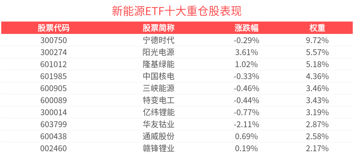 指数表现与成分股行情 - 中证新能源指数截至2025年8月1日13:16上涨0.50% [1] - 成分股捷佳伟创20%涨停 奥特维上涨6.21% 固德威上涨5.34% 爱旭股份上涨4.07% 迈为股份上涨3.95% [1] - 新能源ETF(159875)当日上涨0.43% 盘中最高涨幅近2% [1] ETF流动性与资金动向 - 新能源ETF当日换手率3.59% 成交额3231.31万元 [1] - 近1周日均成交额4757.30万元 [1] - 近1月规模增长474.35万元 [1] - 连续3天获杠杆资金净买入 单日最高净买入460.01万元 最新融资余额2656.70万元 [1] 业绩表现与收益数据 - 新能源ETF近6月净值上涨6.11% [1] - 自成立以来最高单月回报25.07% 最长连涨3个月 连涨涨幅13.96% 上涨月份平均收益率7.60% [1] - 近3个月超越基准年化收益5.41% [1] 权重股市场表现 - 中证新能源指数前十大权重股合计占比43.41% [4] - 阳光电源上涨3.61%(权重5.57%)隆基绿能上涨1.02%(权重5.18%)通威股份上涨0.69%(权重2.58%)[3] - 宁德时代下跌0.29%(权重9.72%)中国核电下跌0.33%(权重4.36%)三峡能源下跌0.46%(权重3.46%)[3] 个股业绩亮点 - 捷佳伟创2025年上半年预计净利润17-19.6亿元 同比增长38.65%-59.85% [3] - 扣非净利润预计15.49-18.09亿元 同比增长31.37%-53.41% [3] 行业政策导向 - 光伏行业成为"反内卷"国家战略核心阵地 针对同质化低价竞争和产能过剩问题 [4] - 行业有望通过市场化导向和供给侧改革实现价格合理回升与盈利修复 [4]
