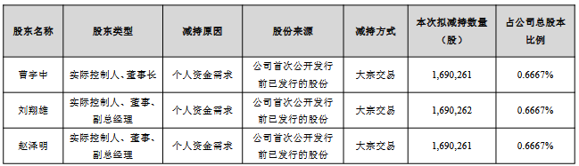 华辰装备:实际控制人曹宇中、刘翔雄、赵泽明拟合计减持不超过约507万股