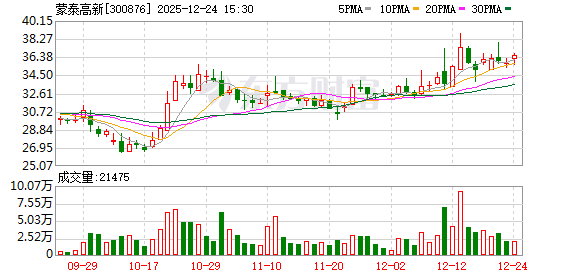 公司股价与交易表现 - 12月24日盘中股价报36.48元/股,上涨2.01%,总市值39.66亿元 [1] - 当日成交额4216.27万元,换手率1.44% [1] - 当日主力资金净流出54.00万元,大单买入占比23.30%,卖出占比24.58% [1] - 今年以来股价累计上涨33.14%,近5日、20日、60日分别上涨4.20%、10.48%、22.25% [1] 公司基本业务与行业 - 公司全称为广东蒙泰高新纤维股份有限公司,成立于2013年9月6日,于2020年8月24日上市 [1] - 主营业务为聚丙烯纤维的研发、生产和销售 [1] - 主营业务收入构成为:差别化丙纶长丝51.18%,常规丙纶长丝44.07%,锦纶丝3.62%,其他(补充)1.13% [1] - 所属申万行业为基础化工-化学纤维-其他化学纤维 [1] - 所属概念板块包括:专精特新、碳纤维、户外露营、新材料、融资融券等 [1] 公司股东与财务表现 - 截至9月30日,股东户数为5542户,较上期减少5.41% [2] - 截至9月30日,人均流通股为12939股,较上期增加10.85% [2] - 2025年1-9月,公司实现营业收入3.80亿元,同比增长10.93% [2] - 2025年1-9月,公司归母净利润为-5113.49万元,同比减少73.25% [2] 公司分红历史 - A股上市后累计派现8630.85万元 [2] - 近三年累计派现3830.85万元 [2]