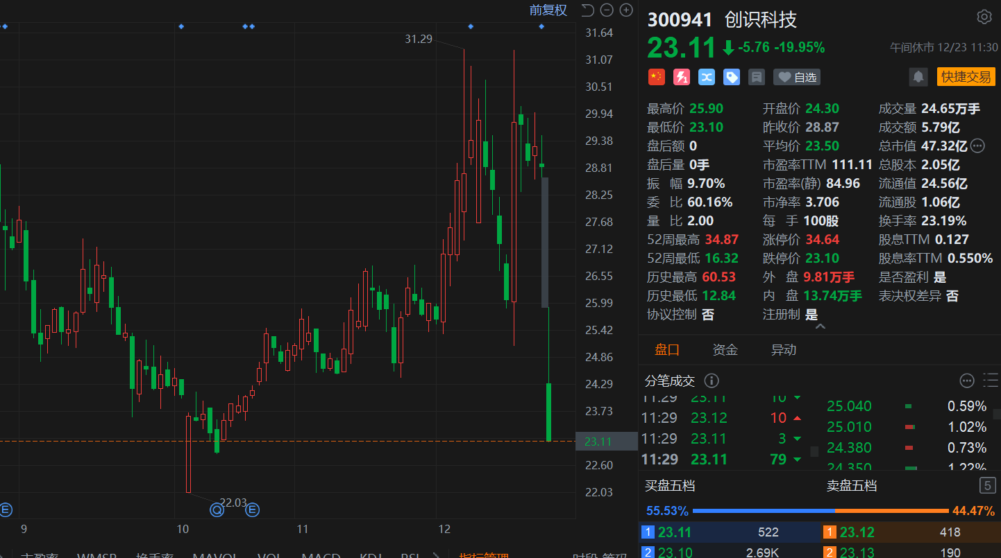 A股异动 | 实控人被留置,创识科技触及20CM跌停,创2个月新低