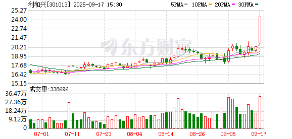 股价表现与交易数据 - 利和兴今日涨停 收盘价涨幅达20%[2] - 全天换手率17.90% 成交额7.90亿元 振幅17.79%[2] - 近5日主力资金净流入5508.80万元[2] 龙虎榜机构资金动向 - 机构专用席位合计净卖出1576.16万元[2] - 4家机构现身买卖席位 合计买入5058.51万元 卖出6634.67万元[2] - 营业部席位合计净买入4354.99万元[2] 主力资金流向 - 今日主力资金净流入1.11亿元[2] - 特大单净流入1.70亿元 大单资金净流出5829.93万元[2] - 前五大营业部合计成交1.82亿元 净买入2778.82万元[2] 重点席位交易明细 - 买一机构专用席位买入2250.51万元同时卖出1853.62万元[2] - 买四机构专用席位买入1771.06万元同时卖出1782.92万元[2] - 卖二机构专用席位卖出1848.44万元仅买入390.03万元[2]