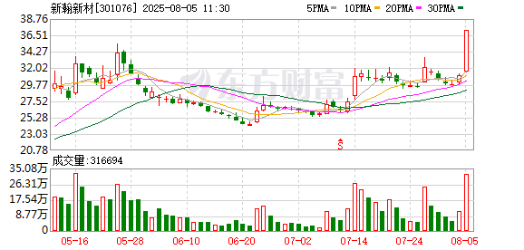 股价表现 - 股价创历史新高 报35.56元 日内涨幅14.86% [2] - 成交量1888.30万股 成交金额6.22亿元 换手率17.20% [2] - A股总市值62.19亿元 流通市值39.05亿元 [2] 行业对比 - 基础化工行业整体涨幅0.50% [2] - 行业内269只个股上涨 元琛科技等3只涨停 [2] - 140只个股下跌 科拓生物跌幅9.44%居首 [2] 融资交易 - 最新两融余额1.96亿元 融资余额1.96亿元 [2] - 近10日融资余额减少274.41万元 环比下降1.38% [2] 股东结构 - 最新股东户数21600户 较7月20日减少100户 [2] - 股东户数环比下降0.46% [2] 财务数据 - 一季度营业收入1.16亿元 同比增长12.43% [2] - 一季度净利润1618.81万元 同比增长47.85% [2] - 基本每股收益0.1200元 加权平均净资产收益率1.40% [2]