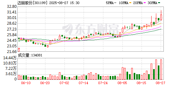 迈赫股份(301199.SZ)发布上半年业绩,归母净利润6841.52万元,增长67.04%