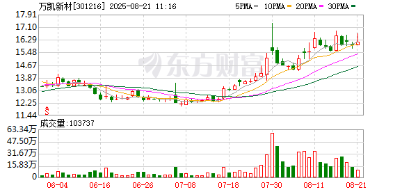 万凯新材:8月18日融资净买入816.99万元,连续3日累计净买入3101.83万元