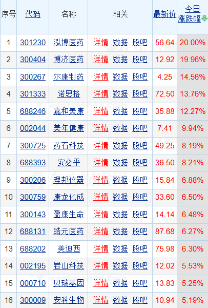 (文章来源:每日经济新闻) 每经AI快讯,创新药概念股开盘走强,泓博医药20cm涨停,成都先导、睿智医药涨超10%,药石科 技、博济医药、美迪西、皓元医药涨逾5%。 ...
