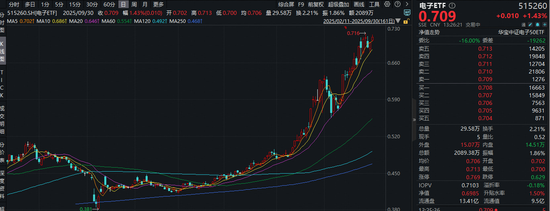 今日(9月30日)一键双拼"半导体+消费电子"的电子ETF(515260)场内价格盘中拉升1.8%,现涨 1.43%,冲击日线2连阳! 成份股方面,半导体显著领涨,电子ETF(515260)标的指数涨幅前10大成份股中,半导体行业个股占 据9席,其中,江波龙、兆易创新涨停,澜起科技涨超9%,长电科技涨逾8%,复旦微电、盛美上海等 个股大幅跟涨。或有AI眼镜火爆,消费电子龙头歌尔股份涨逾4%。 | 图:电子 | | --- | | ETF | | ( | | 515260 | | )标的指数涨幅前 10 大成份股 | | 序号 名称 | | 洗洗帽 ▼ | 两日图 | 申万一级行业 | 申万二级行业 | 申万三级行业 | 总市值 | 成交题 | | --- | --- | --- | --- | --- | --- | --- | --- | --- | | 1 | 江波龙 | 20.00% | 1 | 电子 | 未曾体 | 数字芯片设计 | 746亿 | 35.64Z | | 2 | 兆易创新 | 10.00% man | | 电子 | 未創体 | 数字芯片设计 | 1445 Z | 97.92亿 | | 3 ...