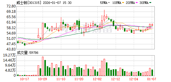 威士顿换手率43.08%,机构龙虎榜净卖出4161.25万元