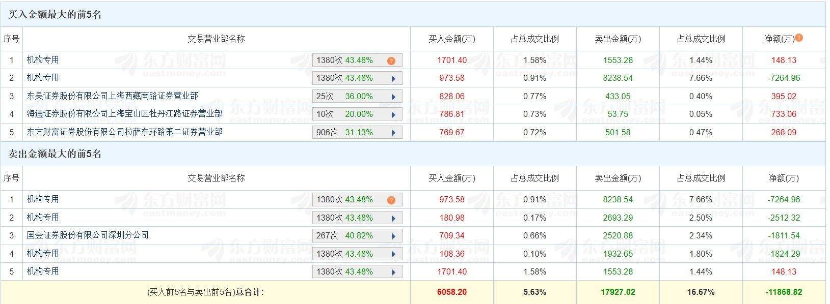 龙虎榜丨机构今日抛售这20股,买入长飞光纤1.79亿元