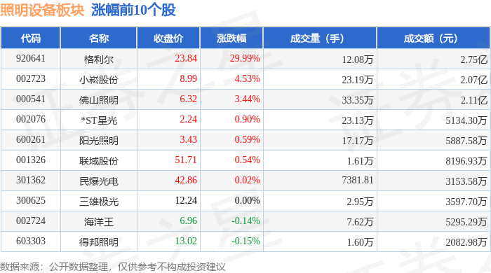 照明设备板块12月29日涨0.26%,立达信领涨,主力资金净流入9462.12万元
