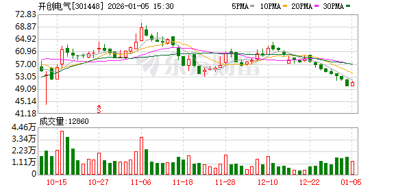 开创电气跌2.15%,成交额8088.90万元,近5日主力净流入-5260.43万