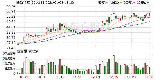 博盈特焊涨4.50%,成交额6.55亿元,近5日主力净流入-5163.45万