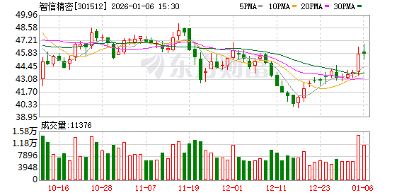 智信精密股价连续6天上涨累计涨幅7.23%,招商基金旗下1只基金持17.53万股,浮盈赚取51.19万元