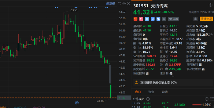 A股异动丨限售股解禁,无线传媒大跌超10%,刷新阶段新低