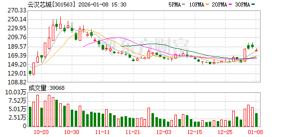 截至9月30日,云汉芯城股东户数2.64万,较上期增加77652.94%;人均流通股527股,较上期增加 0.00%。2025年1月-9月,云汉芯城实现营业收入22.29亿元,同比增长20.68%;归母净利润8146.04万 元,同比增长46.74%。 1月7日,云汉芯城涨1.57%,成交额10.91亿元。两融数据显示,当日云汉芯城获融资买入额1.09亿元, 融资偿还8385.61万元,融资净买入2539.54万元。截至1月7日,云汉芯城融资融券余额合计2.28亿元。 责任编辑:小浪快报 融资方面,云汉芯城当日融资买入1.09亿元。当前融资余额2.28亿元,占流通市值的8.73%。 融券方面,云汉芯城1月7日融券偿还0.00股,融券卖出0.00股,按当日收盘价计算,卖出金额0.00元; 融券余量0.00股,融券余额0.00元。 资料显示,云汉芯城(上海)互联网科技股份有限公司位于上海市松江区千帆路237弄9号11层-13层,成立 日期2008年5月7日,上市日期2025年9月30日,公司主营业务涉及通过有效运用数字技术和互联网技术, 基于自建自营的云汉芯城B2B线上商城,主要为电子制造产业提供高效、专业的电子 ...