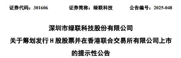 绿联科技(301606.SZ):筹划发行H股股票并在香港联合交易所上市