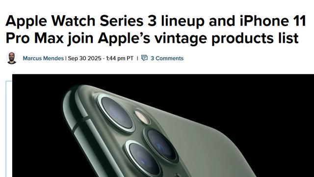 来源:环球网 【环球网科技综合报道】10月1日,据9to5mac报道,苹果日前对其过时产品列表进行了更新,iPhone 11 Pro Max以及所有型号的Apple Watch Series 3均被列入其中。 苹果将一款设备认定为过时产品,有着明确的标准,即自公司停止销售该设备起超过五年。此次iPhone 11 Pro Max进入过时产品列表,而iPhone 11 Pro却未在其中,这暗示着苹果向部分第三方经销商继续分 销iPhone 11 Pro的时间相对更长。 尽管iPhone 11 Pro Max已被归为过时产品,但它仍具备与iOS 26系统兼容的能力,这一特性让不少用户 感到惊喜。 而于2017年9月亮相的Apple Watch Series 3,凭借亲民的价格和不错的性能,成为众多消费者的选择。 直到2022年9月,它才告别销售舞台,售卖周期长达五年之久。(旺旺) ...