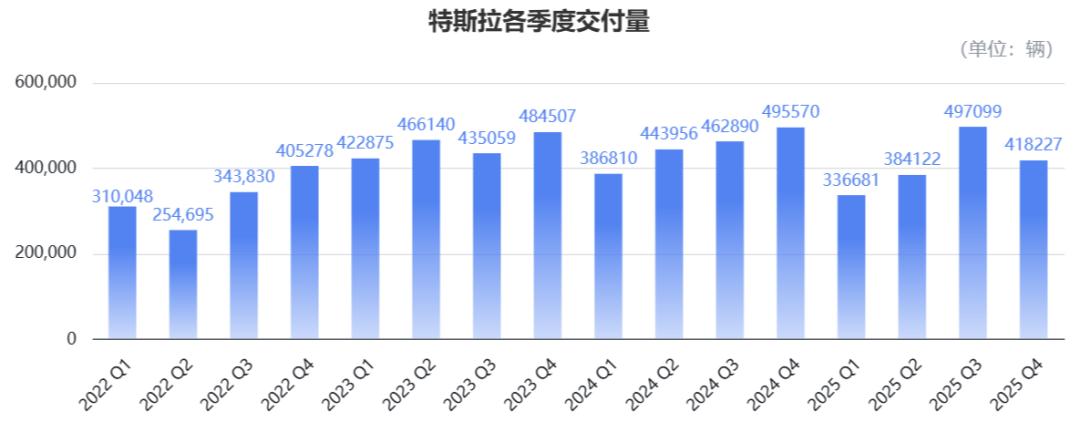 比亚迪夺全球纯电销冠!特斯拉2025年交付量下滑近9% AI叙事能否撑起万亿市值?