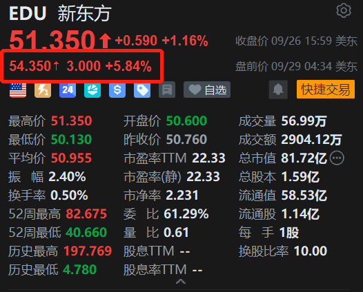 美股异动|新东方盘前涨约6% H股今日大涨近8% 大和上调其盈测